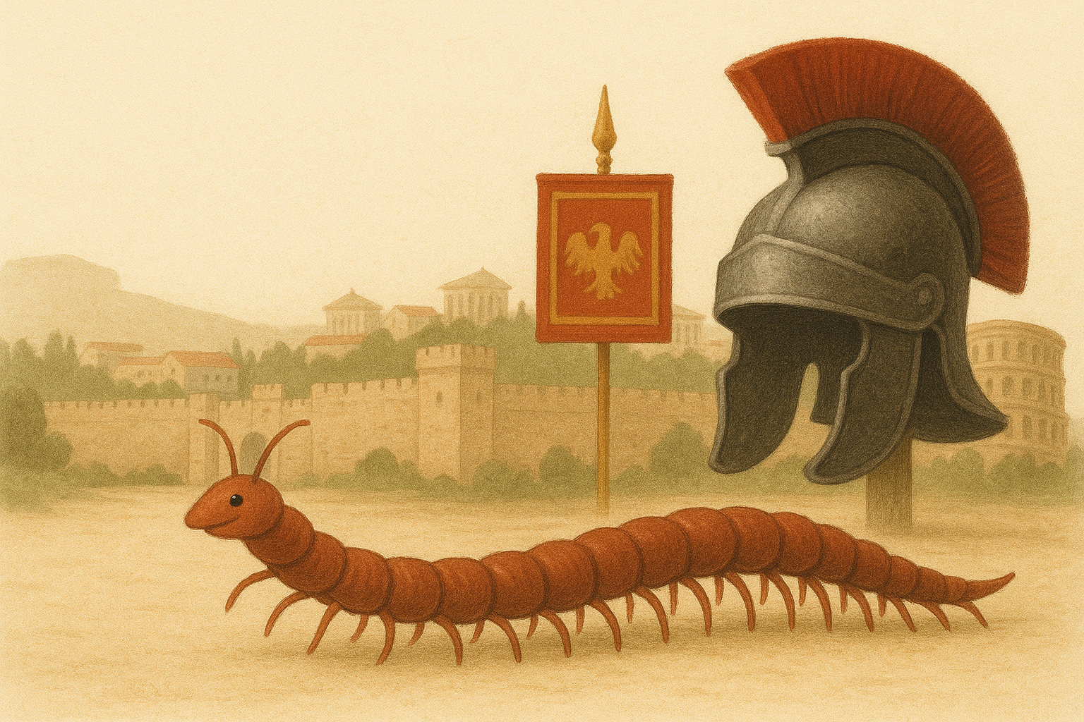 Marcus, een vastberaden duizendpoot, verlaat zijn tuin om soldaat te worden in het Romeinse leger. Onderweg trotseert hij gevaren en spot. In Roma geweigerd als strijder, bewijst hij zijn nut door het kamp te beschermen tegen kleine bedreigingen. Zo vindt hij eer in trouw, niet in glorie.