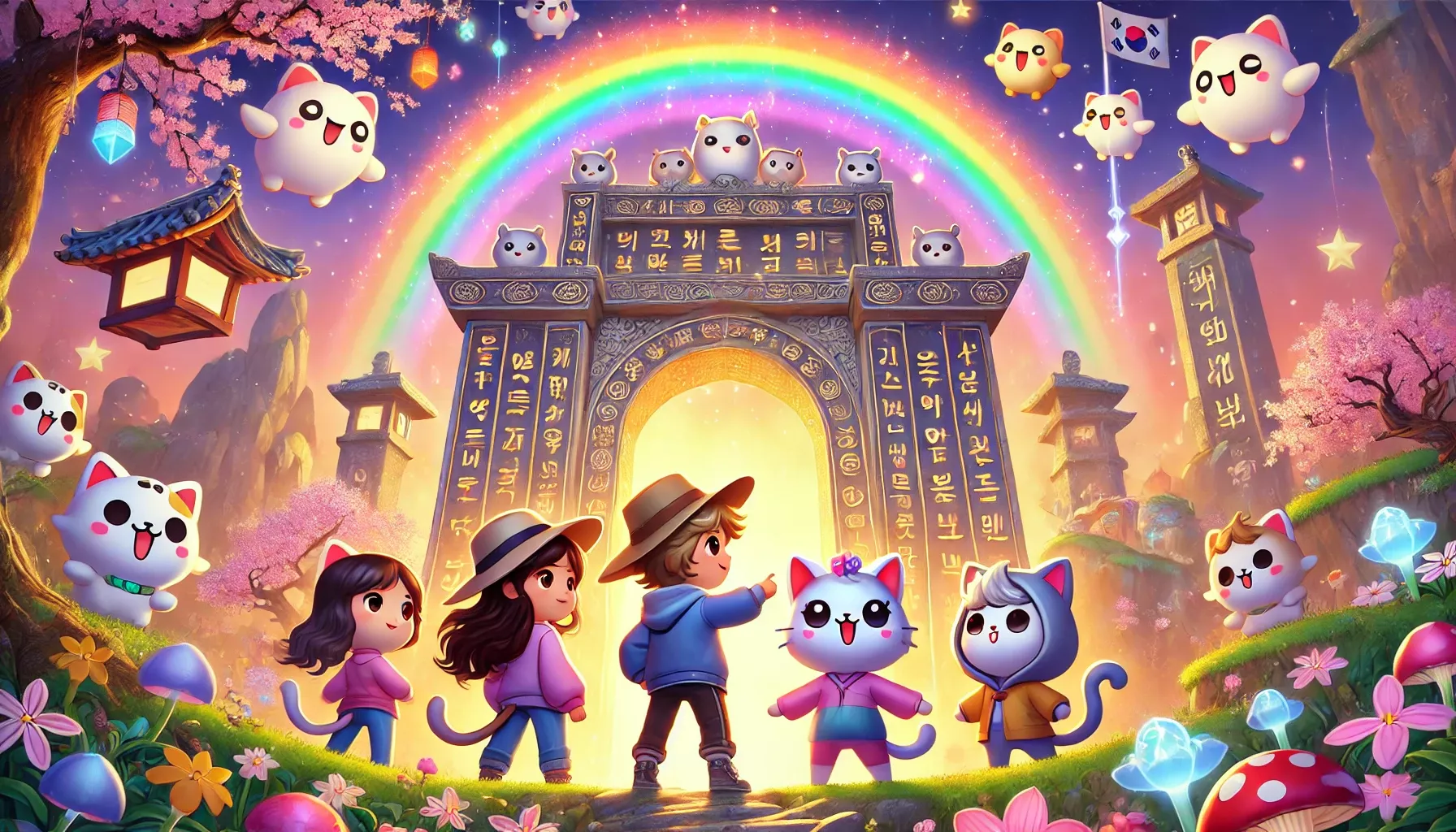 Vier vrienden—티멘, 엘렌, 미란다 en 마이케—gaan op een episch avontuur naar het magische Land van de Katten. Daar moeten ze de geheimen van de Koreaanse taal ontrafelen, geïnspireerd door 세종대왕. Hun vriendschap en kennis worden op de proef gesteld tijdens hun betoverende queeste.