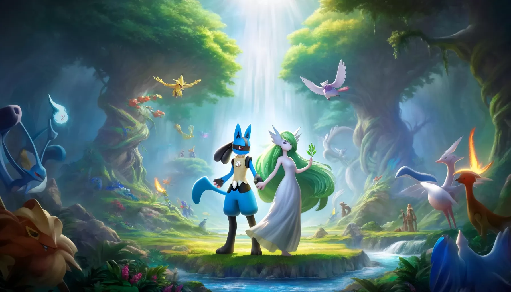 In a world where Pokémon and humans coexist harmoniously, Adam and Eve, formerly known as Lucario and Gardevoir, were at the cradle of human civilization. Their story is an epic journey of transformation, unity, and the battle against dark forces. This legend inspires future generations to strive for wisdom and harmony.